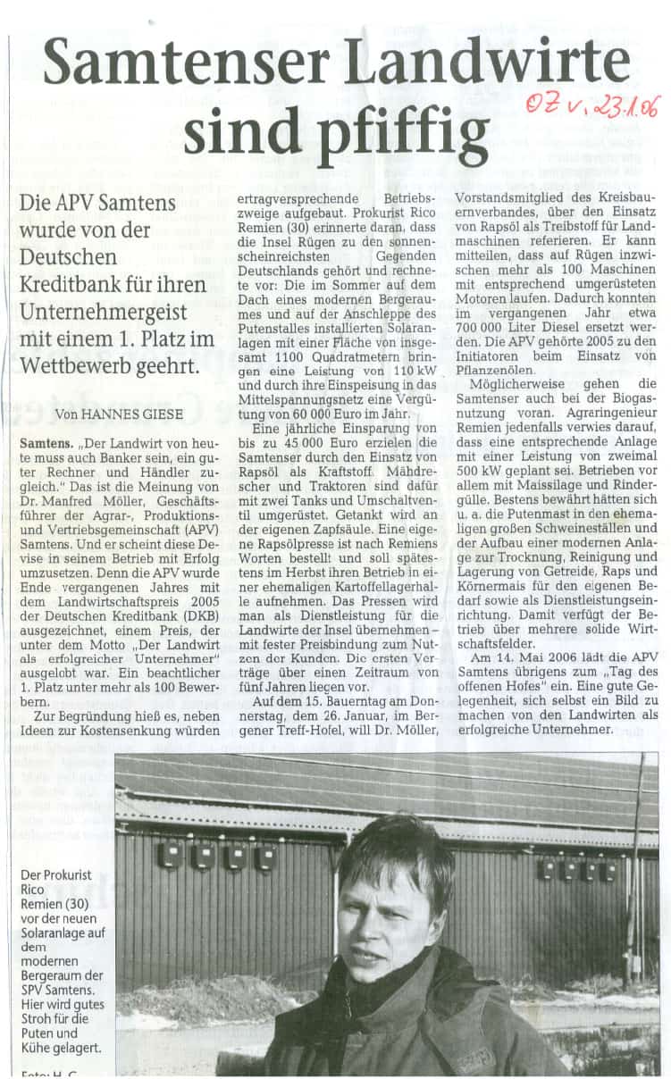 - 23.01.2006 (OZ) – Samtenser Landwirte sind pfiffig