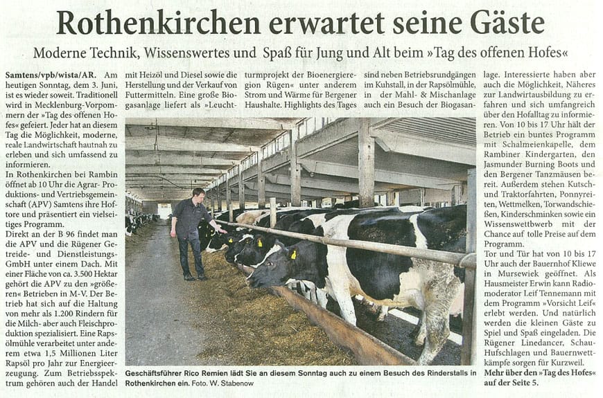 - 27.06.2010 (BLITZ) – Tag des offenen Hofes am 14. Mai von 10 bis 18 Uhr in Rothenkirchen